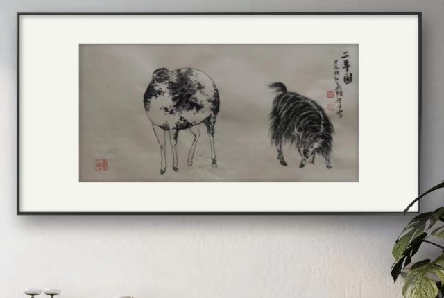 弗利尔美术馆收藏有一幅赵孟頫的《二羊图》,规格为25.2×48.4 厘米。